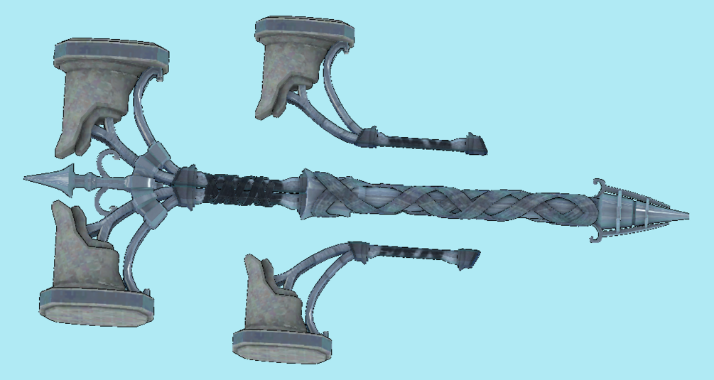 in regards to this warhammer, some paladins would wield a lightweight variant of their weapon often made of a type of stone thus the dual mauls.