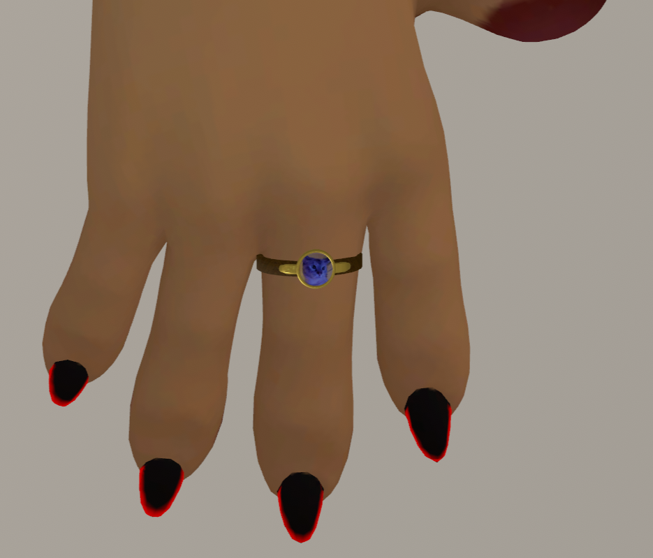 The in game images utilized the Poyomi shader to assemble in unity, and thus have a few effects such as the plated ring using Emission.
